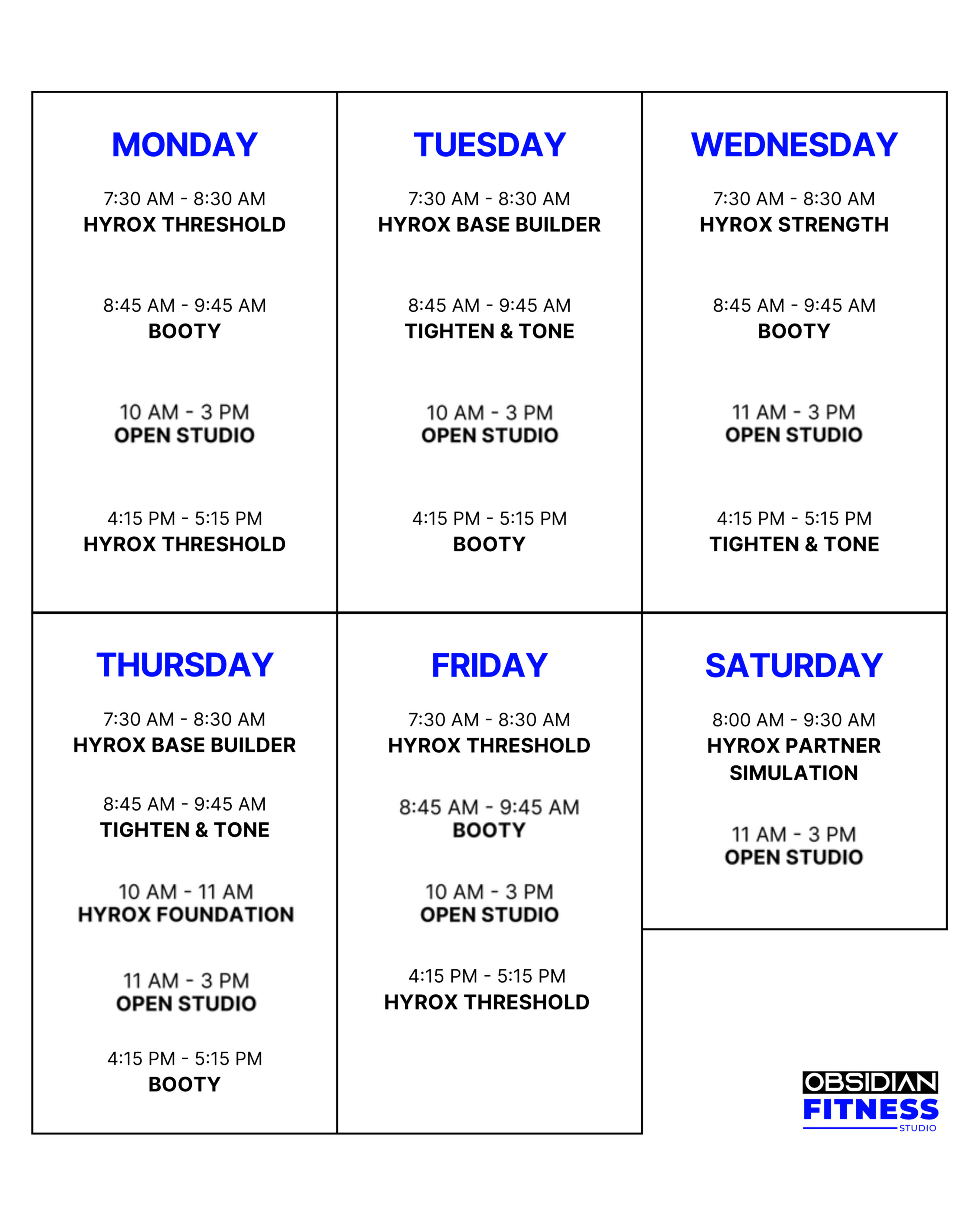 Our Hyrox Base Builder class will help you build the aerobic conditioning that’s necessary for Hyrox racing. A class backed by science, not just movement, this class is intended to keep you in heart rate zones 2 with some sprinkles in zone 3. Strap on one of our heart rate monitors and lower the intensity while you build that aerobic base to develope your fitness!