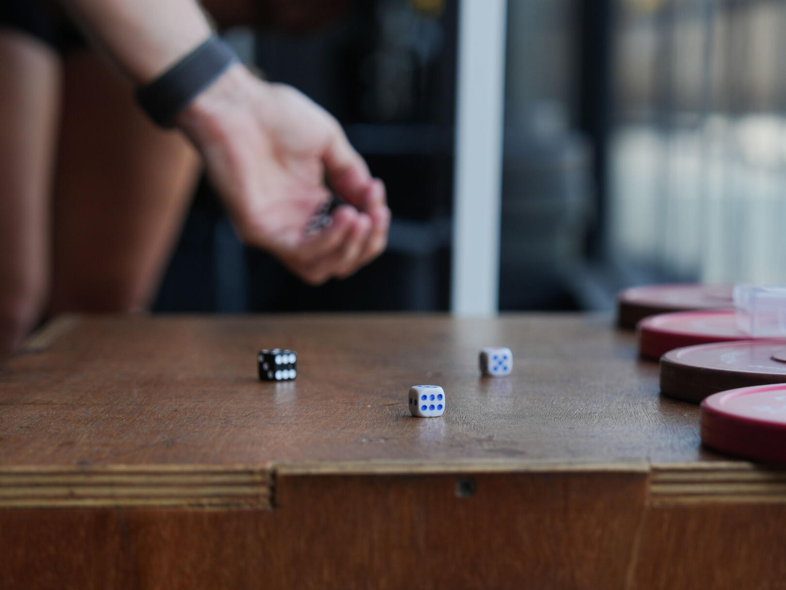 The class starts with a 500m run, followed by dice-led HYROX movements.